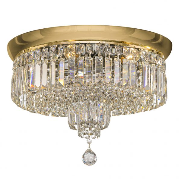 Moderne Deckenleuchte mit über 500 funkelnden Kristallelemente. Farbe Gold, 6 Leuchtmittel. Herstellung in Ägypten, Lieferung aus der Schweiz.